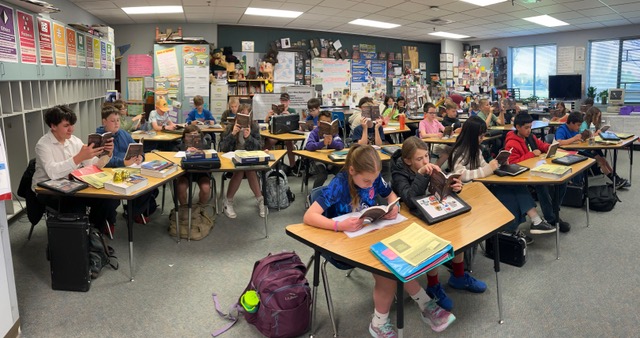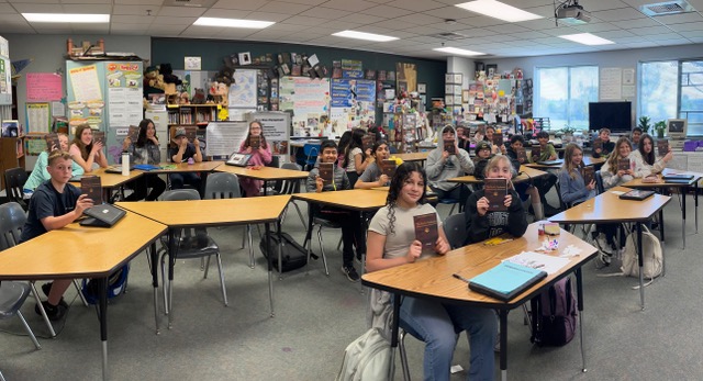 Thank you again for the mini-grant for The Devil’s Arithmetic novels for my students. We have been reading them together now for a little over a week! It is greatly appreciated to have them available in print so that my students can use them to find text evidence to show how to apply our daily vocabulary word, as well as to show how the author has used figures of speech, character development, find inferences, and discover themes. Here are a couple of pictures—one from each of my 6th grade classes at West Valley Middle School! Again, thank you so much for this grant!